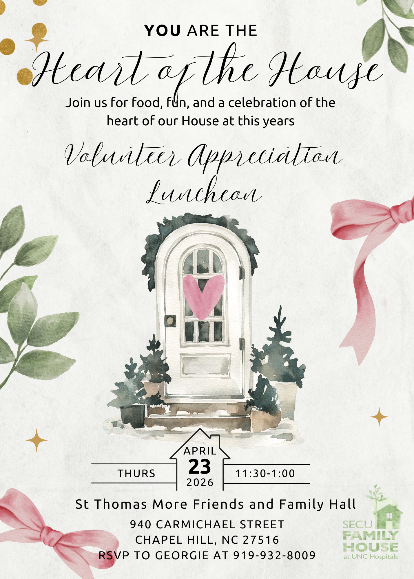 We would like to extend our heartfelt appreciation to all our volunteers for their invaluable talents and gifts in making our families feel loved and cared for during their stay at the House. Our volunteers bring a sense of community to the House, and we are grateful for their contributions. We welcome all volunteers to participate in upcoming events and activities.