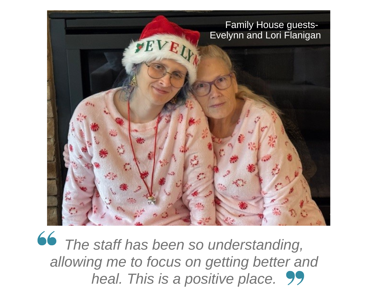 Evelynn shared, “Family House has been a homebase for me. It’s safe, I can get my laundry done and there’s always food close by. The staff has been so understanding, allowing me to focus on getting better and heal. There are many things going on here like the therapy dogs. This is a positive place.”